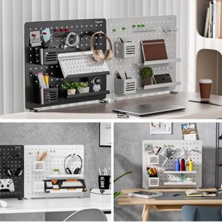 PEGZONE Clamp-on Desk Pegboard, 20.4″ x 16.5″, Black or White
