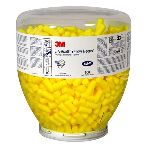 - 3M E-A-Rsoft Yellow Neons earplugs in a refill container for One Touch dispenser 391-1000.