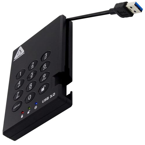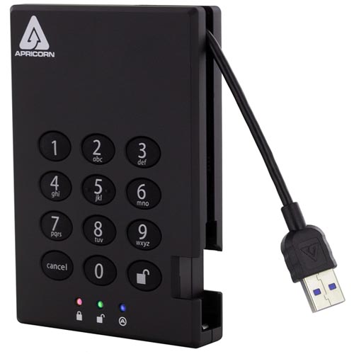 - Equipped with an attached USB 3.0/3.1 Gen 1 Type-A cable that allows data transfer rates up to 5 Gb/s, this solid-state drive features military-grade FIPS PUB 197 encryption and 256-bit AES-XTS hardware encryption, plus a keypad that allows the drive to be accessed using a unique PIN.