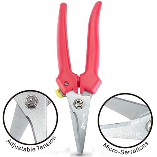 These shears are ideal to cut materials made from aramid and para-aramid fibers such as Kevlar, Dyneema, Vectran, Spectra, Technora, Nomex, Innegra, Dacron and other materials made from fiberglass and carbon fiber in rope, ribbon, thread, tape and fabric form. Its blades are made of high carbon alloy steel from Japan and are infused with Molybdenum and Vanadium (HRC 60~62) through a proprietary manufacturing process to achieve a level of hardness (HV1200) to cut high tech material.