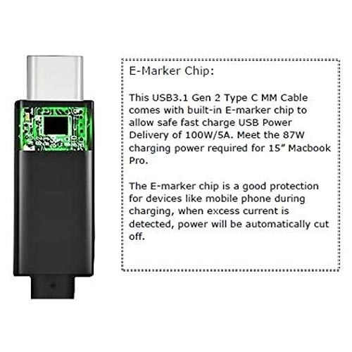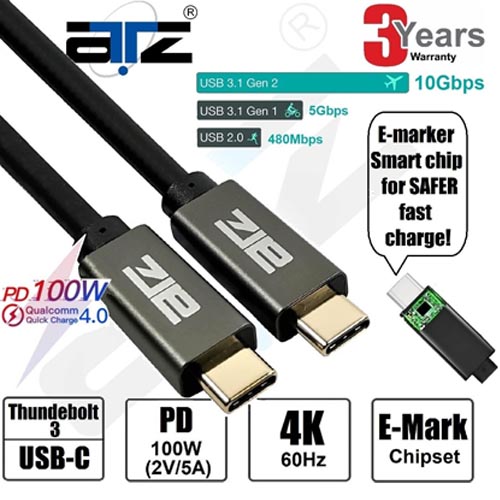 - Model Name: ATZ 1.5m USB3.2 Gen 2 Type-C Male/Male Cable w/EMARK, 10GB Data/Charging 100W 5A/ Connector type: USB Type C