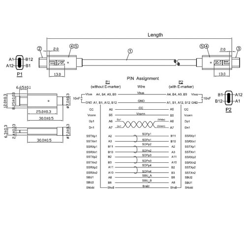 - Connector 1: USB 3.2 Type C Male.