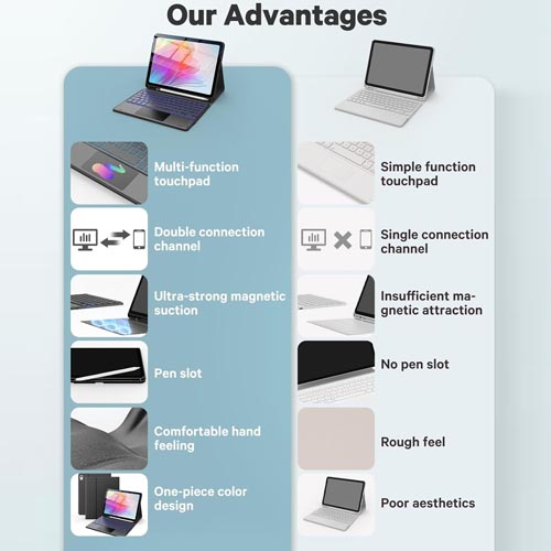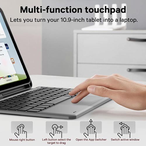 - Multi-touch Trackpad: this keyboard case for iPad (A16) 11th/10th generation has an integrated multi-touch trackpad that perfectly adapts to the IOS system, with various trackpad gestures, providing a comfortable usage experience while clicking, scrolling, and swiping through content effortlessly. Allows you to turn your tablet into a laptop.