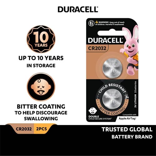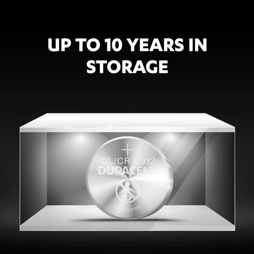 • Duracell CR2032 lithium coin batteries use high-purity lithium and have up to 10 years of in- storage guarantee