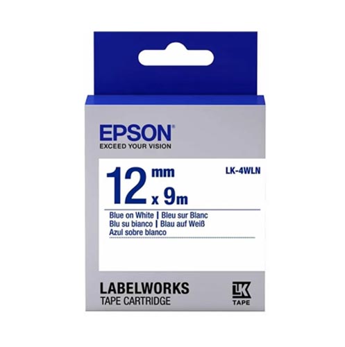 Epson LK-4WLN – 12mm X 9M, Blue On White Standard Polyester Tape – PET