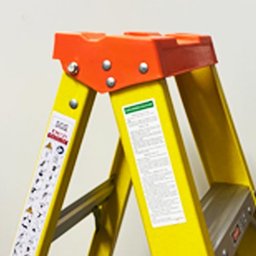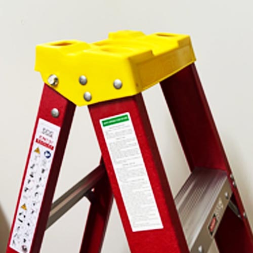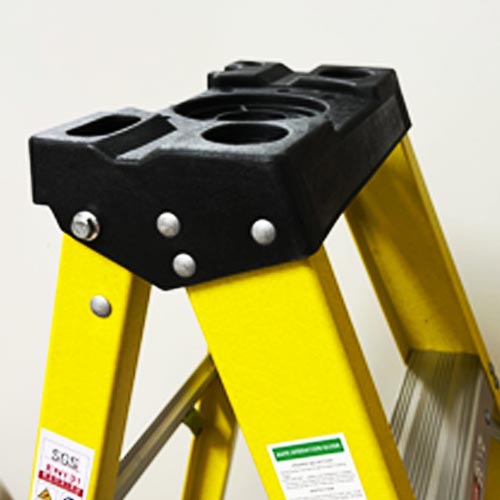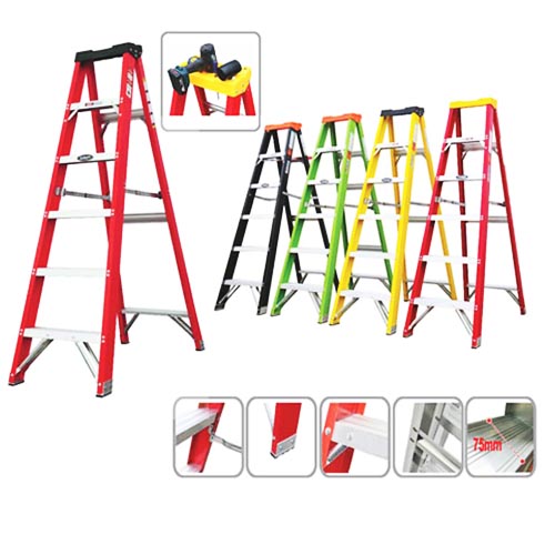 The fiberglass ladder come with two (2) different eye catching frame colours options of  Red/ Yellow. Each Ladder come with standard tool holder at the top of three (3)colour option Orange / Black / Yellow.