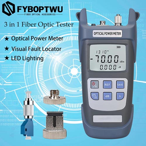 FYBOPTWU 3 in 1 Function Fiber Optic Tester – Portable Optical Power Meter (FC/SC/ST) & VFL 10MW Visual Fault Locator & LED Lighting, OPM & VFL Fiber Optic Tester
