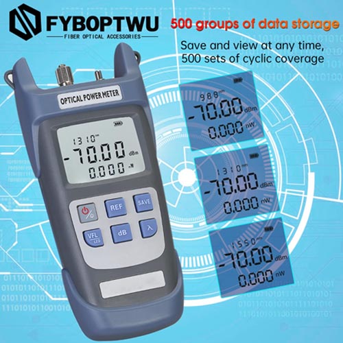 • Advantages:10 minutes without operation, the device will automatically shut down; 500 sets of data storage; optical power test error is less than 0.2dB; users can calibrate the data independently.