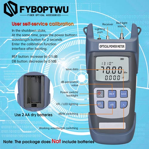 • 3 in 1 Function: Optical power meter & 10MW Visual Fault Locator (VFL) & LED Lighting. It Needs 2 x AAA Batteries.(Note: Batteries Not Included in package)