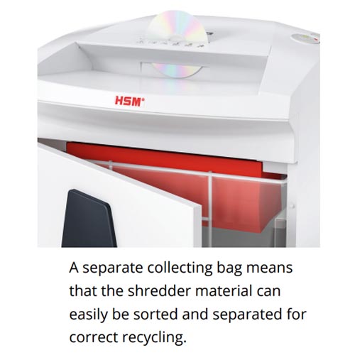 • A separate collecting bag means that the shredder material can easily be sorted and separated for correct recycling.
