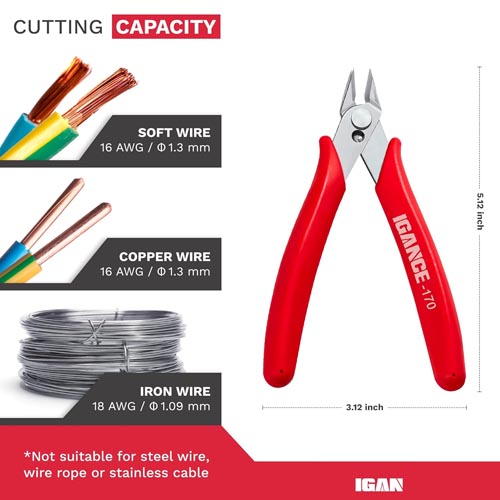 IGAN wire flush cutter has an 11mm long heat-treated carbon steel jaw with angled head design.They are ideally sized for working in small spaces and are perfect for work with and fine mechanics.