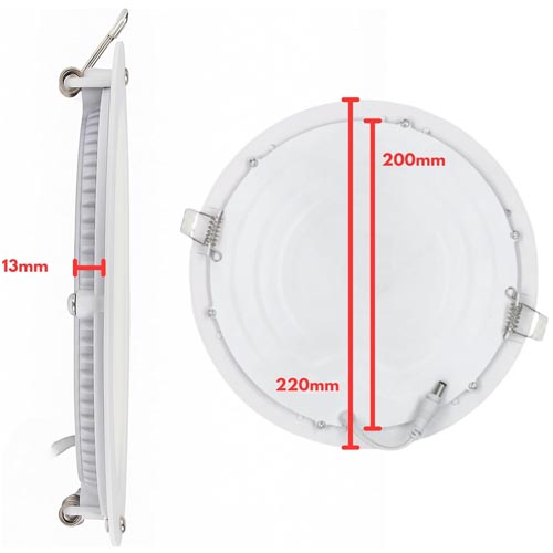 • Outer diameter 225mm Hole depth: 13mm luminaire only, not including driver. Mounting hole diameter: Ø 200mm – Ø 205mm.