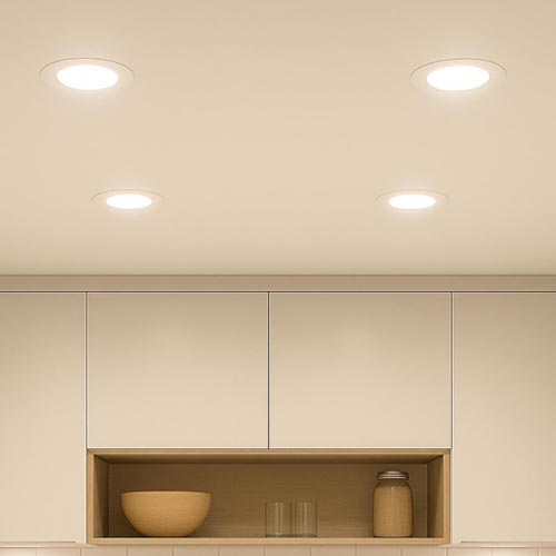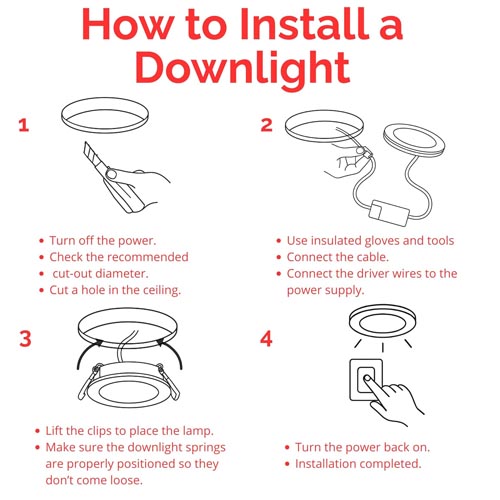 • RECESSED DOWNLIGHTS – Recessed downlights are mounted inside the ceiling, with the surface of the luminaire being flush with the surface of the ceiling. They are installed in pre-cut holes in the ceiling, providing a more discreet and cleaner appearance.