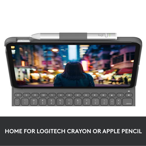 - A built-in holder for Logitech Crayon or Apple Pencil keeps your digital pencil always within reach so you can easily hand-write notes, sketch drawings, or markup documents directly on iPad.