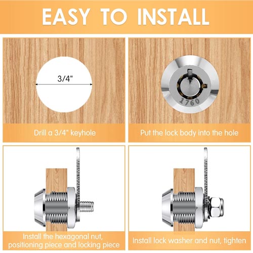 • Wide Application: The file cabinet lock can be widely adopted in different areas such as home, office, RV and more, they are suitable for filing cabinets, display cabinets, lockers and mailboxes to ensure your safety and privacy indoors and outdoors