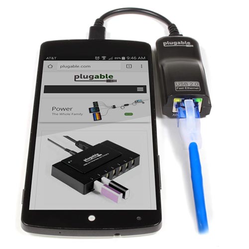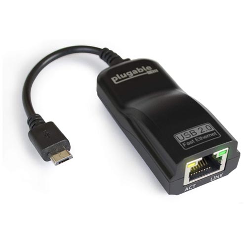 - If your computer or tablet has a full-sized USB port but no Micro-B USB port, use Plugable’s USB2-E100 Ethernet adapter instead.