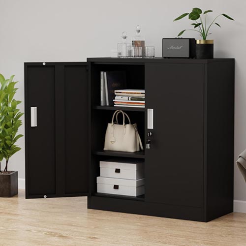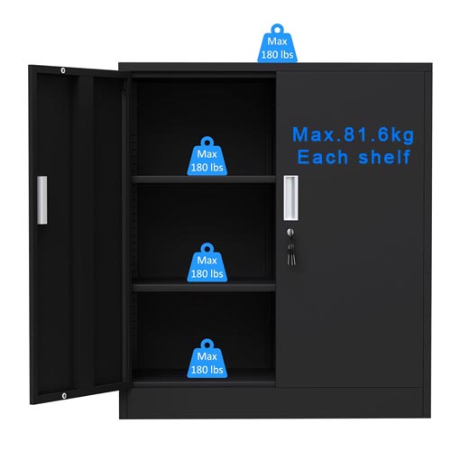 - ADJUSTABLE SHELVES – The shelves of this metal cabinet can be adjusted in height or detached to meet your variable storage needs, offering you maximum adaptability.