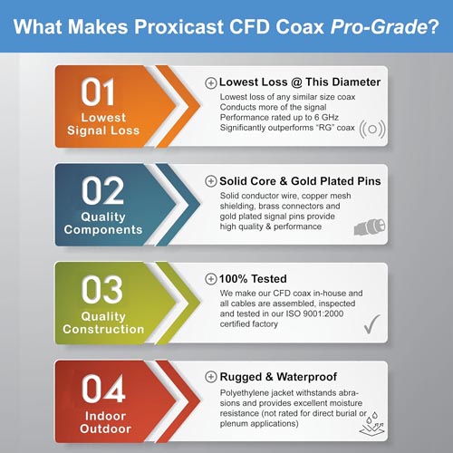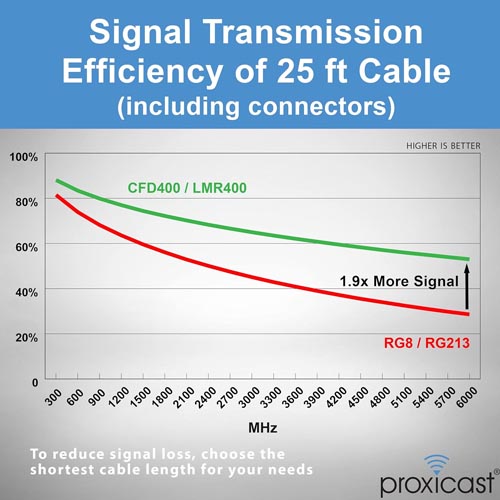 - Proxicast’s coax extension cable assemblies are constructed with top quality extremely low-loss cable and gold plated connectors. Each cable assembly is fully tested. Proxicast recommends LMR195 coax for assemblies up to 10 ft, LMR240 for lengths up to 25 ft and LMR400 for lengths up to 75 ft.