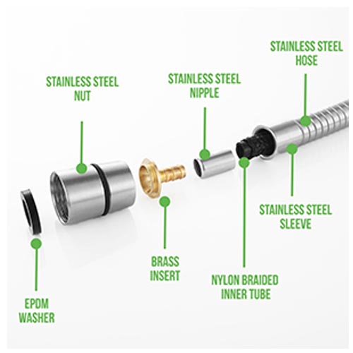 • High pressure design hose – The bidet hose is made of premium grade stainless steel and EPDM inner tube braided with hard nylon and enhanced double-lock system which helps to prevent breakage and water leakage.