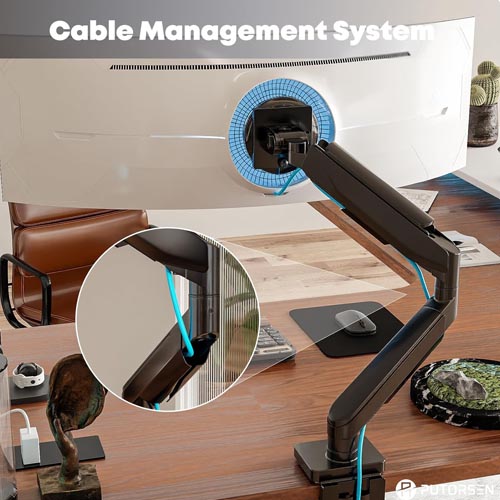 Putorsen PT61-C012 Heavy Duty Monitor-Arm for 17″-49″ Ultrawide Monitor – Aluminum Full Motion Single Monitor Arm Desk Mount for Office & Gaming, Adjustable Gas Spring, Ergonomic, VESA 75/100 mm, Max Load 44lbs, Black