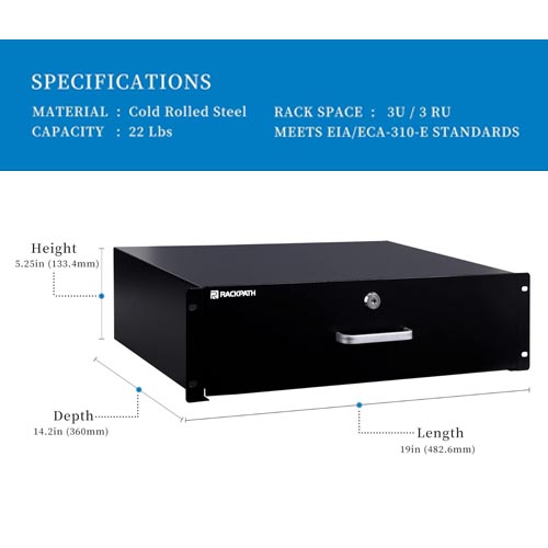 - The RackPath 3U rack mount drawer is designed to securely store your non-rack mountable equipment, DJ recording equipment, software, tools, documents or accessories.