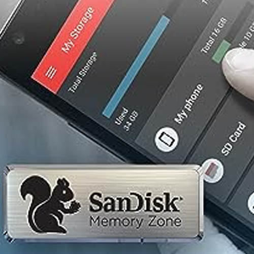 • SanDisk Memory Zone App for Easy File Management – Available from the Google Play store, the SanDisk Memory Zone app (3) lets you view, access, and back up all the files from your phone’s memory in one location. It can also automatically move files from your device to your drive to free up space.
