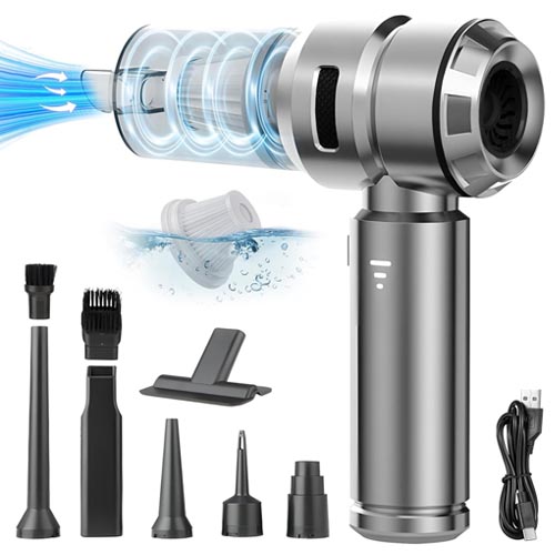 • Multiuse Design: The mini vacuum cleaner is equipped with four functions: suction, blowing, inflation and vacuuming. Strong suction power to thoroughly clean every inch of space. Unique blowing design, to deal with different cleaning challenges.