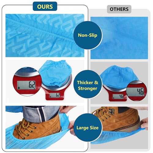 100% recyclable non-woven fabric, 200-pack disposable shoe covers.