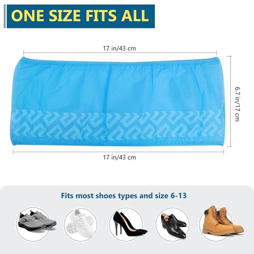 • Larger Size: Stretchable size about 16.9″ in length, 6.7″(W), shoe covers contain an elastic band for flexibility, suitable for shoe size 6-14 (up to US Men’s work boots 12).