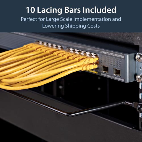 • IT GRADE: This 10-pack of cable managers is ideal for large-scale implementation, and each round offset lacing bar takes up only one third of 1U and has a low profile.