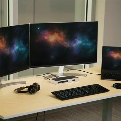 - Ideal for highly detailed graphics applications, this dual-4K 60Hz docking station enhances your productivity by expanding the display capabilities of your laptop across two Ultra HD 4K monitors. The laptop docking station works with DisplayLink® to support high-resolution monitors, enabling two full 4K 60Hz displays from a single USB connection.