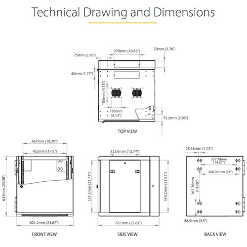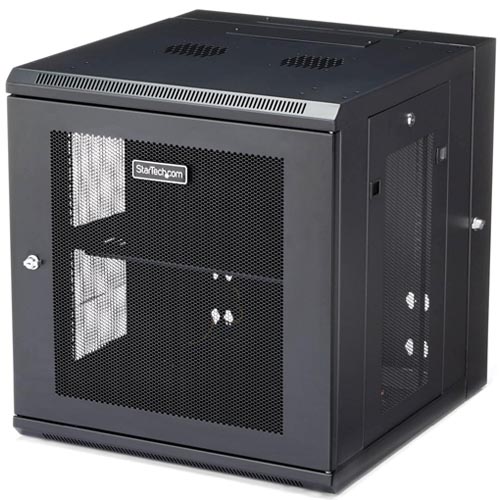 - EASY ACCESS: Wall-mount data rack features a 180° hinged, enclosed and lockable rack design with easy access to the rear of the mounted devices; Flexible locking server cabinet with reversible and removable front door and removable side panels