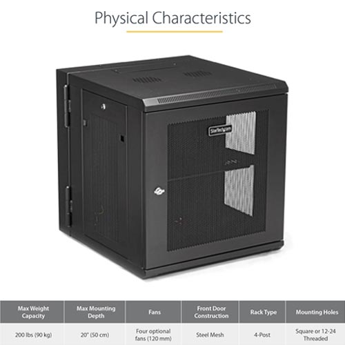 - BUILT TO LAST: The 12U wall-mounted network cabinet offers a 4 post design for additional support of your equipment; Constructed of high-quality SPCC cold-rolled steel for strength and durability with a maximum weight capacity of 198lb (90kg)