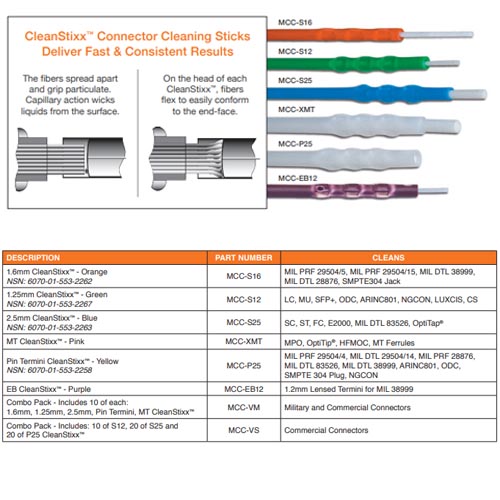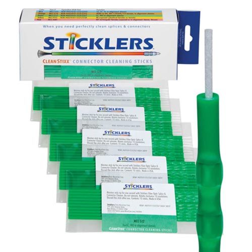 • The sticks and their packaging are color-coded for easy selection. Engineered for use with the Sticklers fiber optic cleaning fluid (#MCC-POC03M).