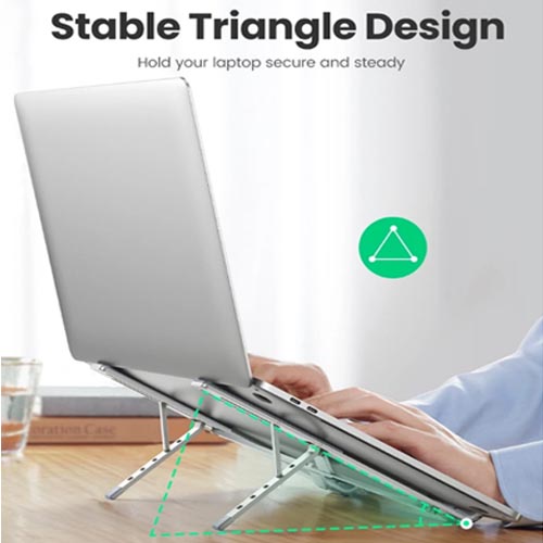 - Stable and Durable: This desk laptop stand is made of aluminum body and triangle construction, which is sturdy enough to hold up 11 lbs weight on top. It can effectively ensure the stability of the laptop bracket and prolong its service life. The silicone pads on the holder ensure your laptop is more stable on the foldable stand, preventing it from slipping and scratches.