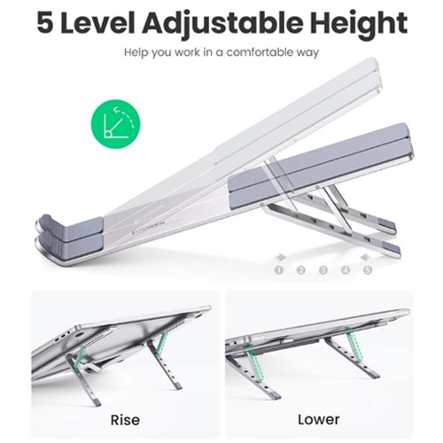 - Adjustable Height: This laptop holder can be adjusted among 5 level heights from 1.84 to 5.45 inches. It raises your laptop to a perfect eye level and minimizes neck fatigue, back pain and eye fatigue. The ergonomic design makes it quite easy for watching videos and typing, suitable for the designer, engineer, programmer and the people who work long hours in front of the laptop.