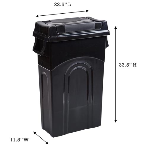 United Solutions Highboy Waste Container with Swing Lid – 23 Gallon, Space Saving Slim Profile and Easy Bag Removal, Handles for Easy Carrying, Indoor/Outdoor Use, Black, 1-Pack.