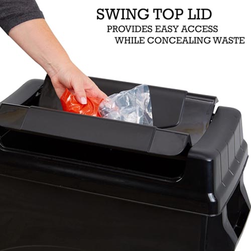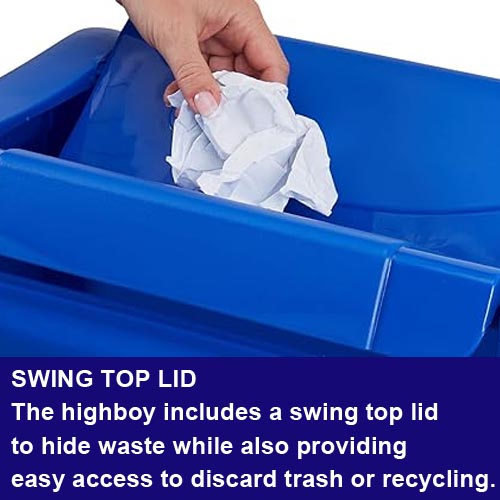 • The Highboy Waste Container with compatible Swing-Top Lid is ideal for tight spaces at home or in the office.