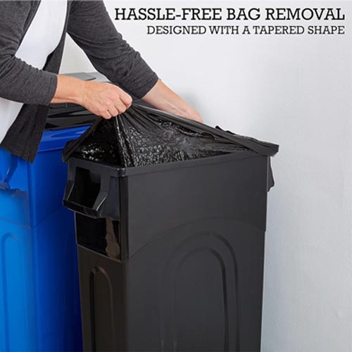 • Use these bins for kitchen trash, garage waste, and more. When you’re ready to remove the liner, vented sides reduce the force required to lift it out, creating a simple experience every time.