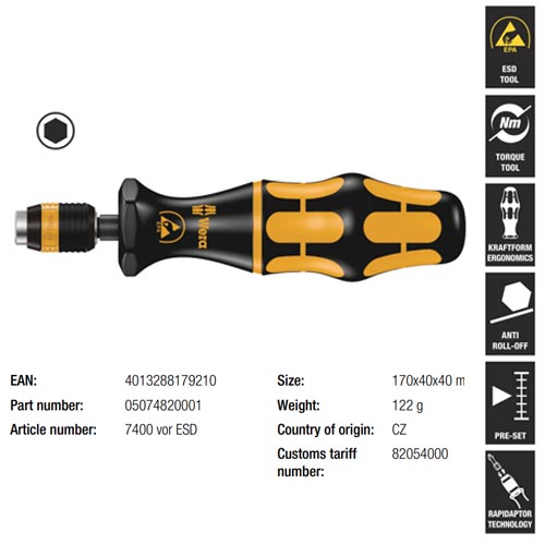 - Suitable for bits with ¼” hexagon head drive as per DIN ISO 1173-C 6.3 and E 6.3 (ISO 1173).