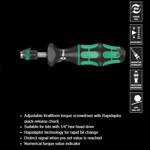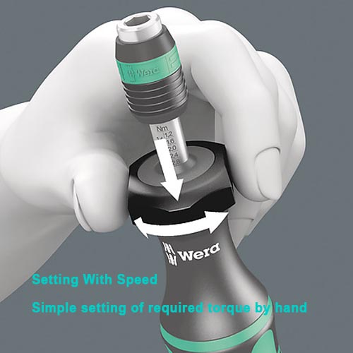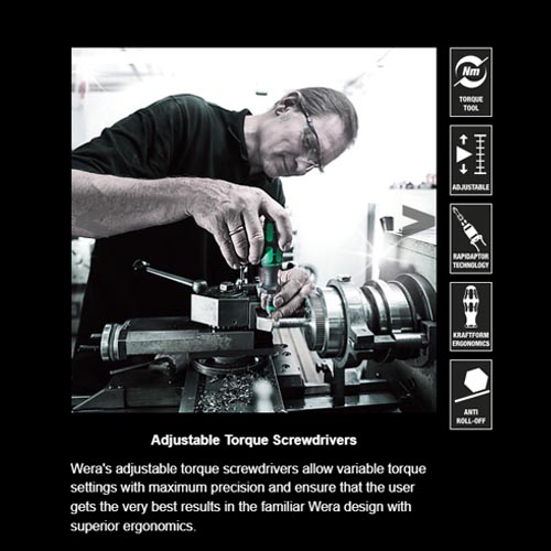 - Wera torque screwdriver. Variable torque setting option with highest precision. Simple adjustment of the required torque value without any special tools. Easy-to-read scale value; audible click signal.