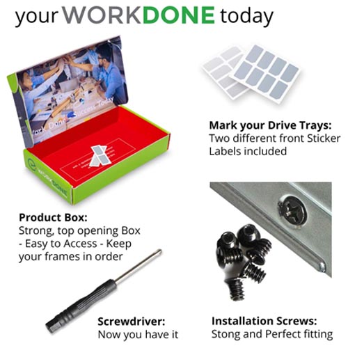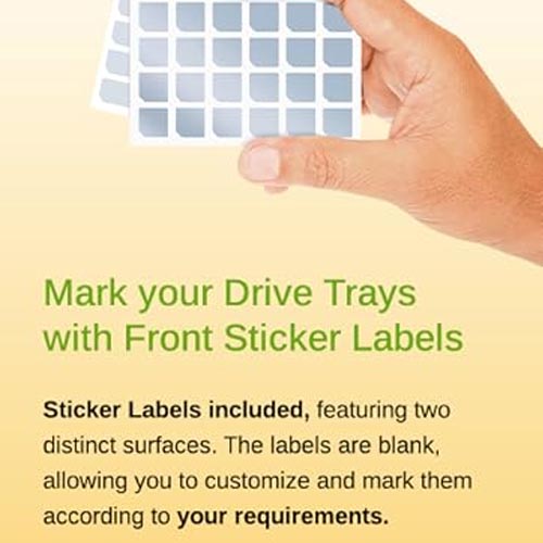 • Practical Front Labels – Mark and clue sticker label to dedicated place on the front of drive caddy. Two different Sticker Label surface types included. Use Permanent Marker or Ballpoint Pen to mark your empty Sticker Labels. Make it more visual – mark and see your RAID Volume or individual disks – without removing Hard Drives. Shorten your inventory time.