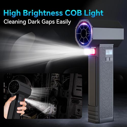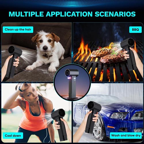 - MULTI USE & LED LIGHTS: The handheld car dryer air blower is designed with an LED light for cleaning dark corners with ease, It is suitable for cleaning computer keyboards, laptops, cameras, car seats, and blinds, It can also be used for inflating products such as beds and lifeboats, Additionally, it is useful for picnics, fires, floor cleaning, and removing pet hair