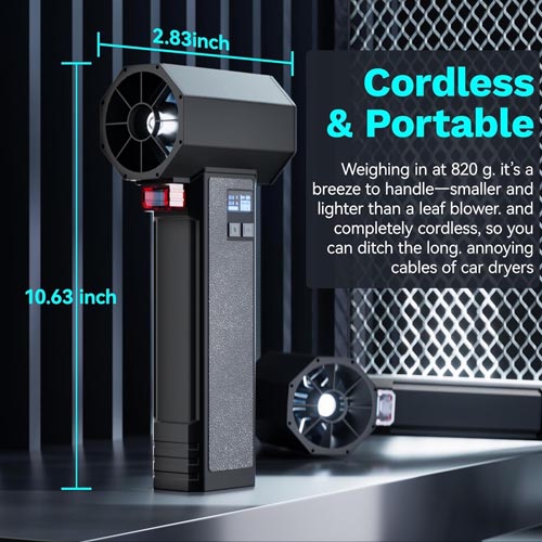 - LONG BURNING LIFE: Car blower for drying is equipped with a large 4000mAh battery that can work continuously for 80min, compared to other products this wireless blower can be recharged and used again and again