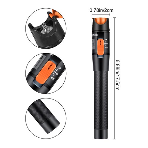 - Anti collision and dust proof portable design: Visual fault locator fiber is designed with stainless steel head and aluminum body to prevent crash and dust, and the case ground design prevents damage efficiently. Small and lightweight, the pen design comes with a bag and lanyard for easy carrying for outdoor fiber work.