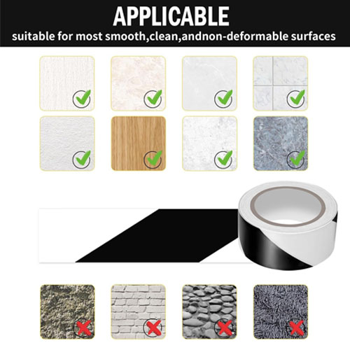 - Multi-Applications — The safety tape is strong and versatile, for indoor and outdoor use, could adheres to variety of dry surfaces, it also can be used for hazard marking, lane marking, security coding, as well as sealing and bundling.