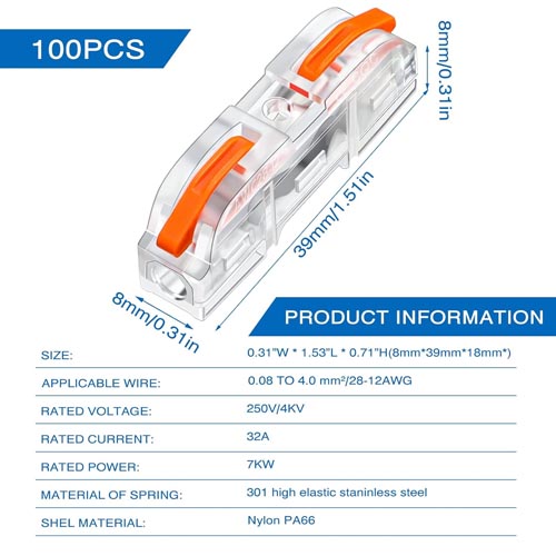 • The inline wire splice connector is helpful for reducing wiring time effectively, which can make your places clean and neat.